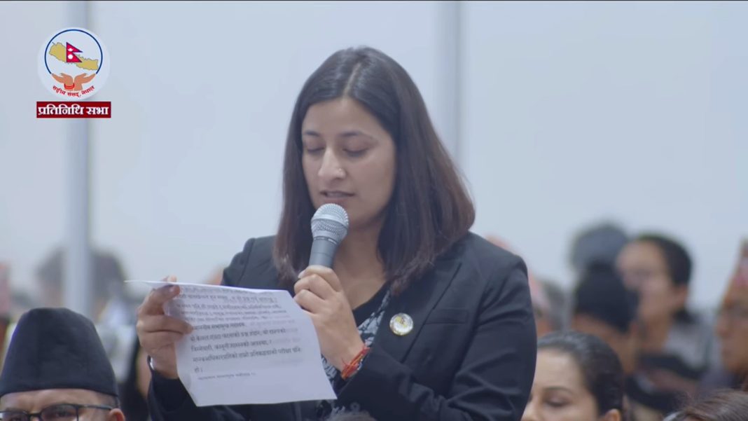 आज प्रतिनिधिसभा बैठकको शुन्य समयमा बोल्दै विद्यालय पोसाकमै कुशासन र भ्रष्टाचारविरुद्ध प्रदर्शनमा उत्रिएका युवामाथि टाउकोमा गोली प्रहार गर्ने कुन राष्ट्रिय र अन्तर्राष्ट्रिय कानुनले दिन्छ भन्दै प्रश्न गरेकी छन् ।