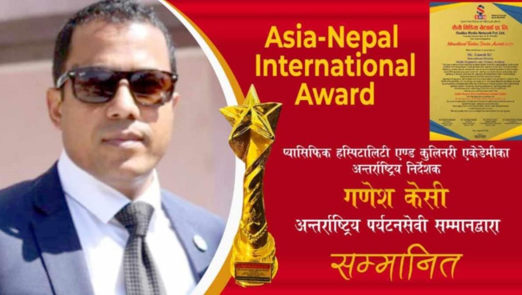 बैंकक – सफल युवा व्यवसायी एवम् एनआरएनए अष्ट्रेलियाका पूर्वअध्यक्ष प्यासिफिक हस्पिटालिटी एण्ड कुलिनरी एकेडेमीका अन्तराष्ट्रिय डाईरेक्टर सामाजिक व्यक्तित्व गणेश केसी एसिया नेपाल इन्टनेशनल अवार्ड २०२४ बाट सम्मानित भएका छन्। शैली मिडिया नेटवर्क प्रालि को आठौं वार्षिकोत्सवको अवसरमा शनिबार बैंककमा आयोजना गरिएको एसिया नेपाल इन्टनेशनल अवार्ड २०२४ ’ अन्तर्गत नेपालको पर्यटनलाई विश्वबजारमा प्रवर्द्धन गरि मुलुकलाई योगदान पुर्यायाउनु भएमा केसी सम्मानित भएका हुन्। सम्मानित सामाजिक व्यक्तित्व गणेश केसी संक्षिप्त परिचय चितवनमा जन्मिएर अस्ट्रेलियालाई आफ्नो कर्मभूमि बनाएका केसी विगत २ दशक भन्दा बढी देखि विदेशमा रहेर पनि समुन्नत नेपाल निर्माणको लागि विभिन्न क्षेत्रमा सक्रिय रहेका छन्।