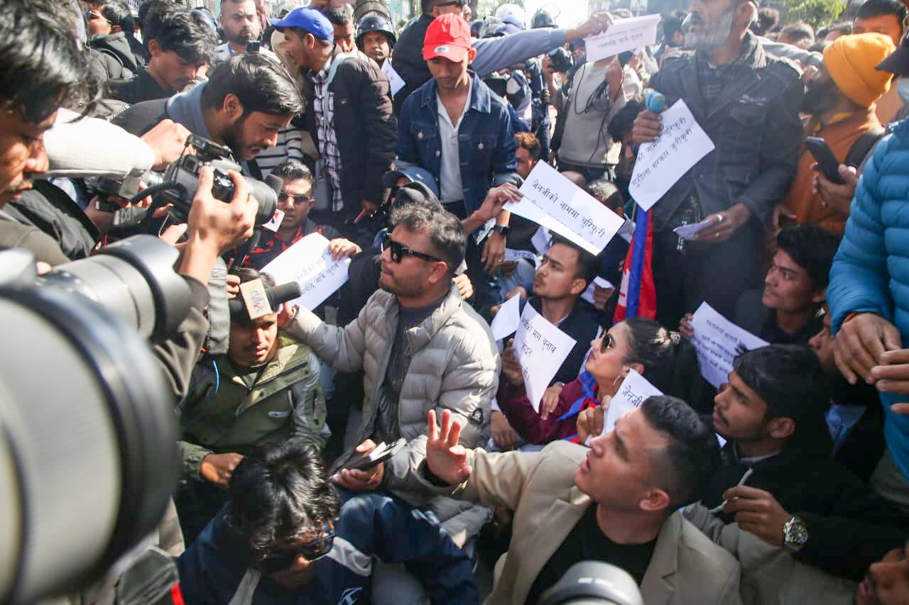 तस्विरमा माइतीघरमा प्रदर्शनमा उत्रिएका ‘जेनजी’ ओहो पोष्ट २०८२ पुस, ०७ Share FacebookTwitterWhatsAppCopy URL मिराज ढुंगानालगायत ‘जेनजी’ प्रदर्शनमा उत्रिएका छन् । आन्दोलनको घोषणा गर्दै सोमबार काठमाडौंको माइतीघरमा उनीहरूले प्रदर्शन गरिरहेका छन् । तस्विरहरू : सक्षम घिमिरे Share FacebookTwitterWhatsAppCopy URL Previous articleअन्तर्राष्ट्रिय नेपाली गीतकार संघ (INLA) को दोस्रो अधिवेशन पेन्सिलभेनियामा हुनेNext articleचीनमा एआई खेलौनाहरूको लोकप्रियता सम्बन्धित समाचार एमालेको विरोधले माइतीघर तनावग्रस्त (फोटो फिचर) बिहानीपख देखिएको सुन्दर बडी मालिका क्षेत्र (तस्बिर) शीतल निवासमा यस्ताे देखियाे बालेनसहित मन्त्रीहरुको शपथ ग्रहण समाराेह (फोटोफिचर) हिँउ माथि हेलि (तस्विरहरु) ताजा पोष्ट संघीयता बलियो बनाउन संसदीय समितिको ‘एक्सन’: ३ वटा शक्तिशाली उपसमिति गठन सदिक्षा के.सी - “गृहमन्त्रीको स्पष्टीकरण चित्तबुझ्दो छैन, निष्पक्ष छानबिन गरौँ” – नेपाली कांग्रेस सदिक्षा के.सी - सांसद शाहीको गर्जन : पार्टीभित्र तानाशाही चल्दैन सदिक्षा के.सी - शेयर विवादमा गृहमन्त्री गुरुङको स्पष्टीकरण: ‘पुष्टी नभएका हल्लाको पछि नलागौँ’ सदिक्षा के.सी - धपधपी बल्दै तराई, कठ्याङ्ग्रिँदै जोमसोम सदिक्षा के.सी -