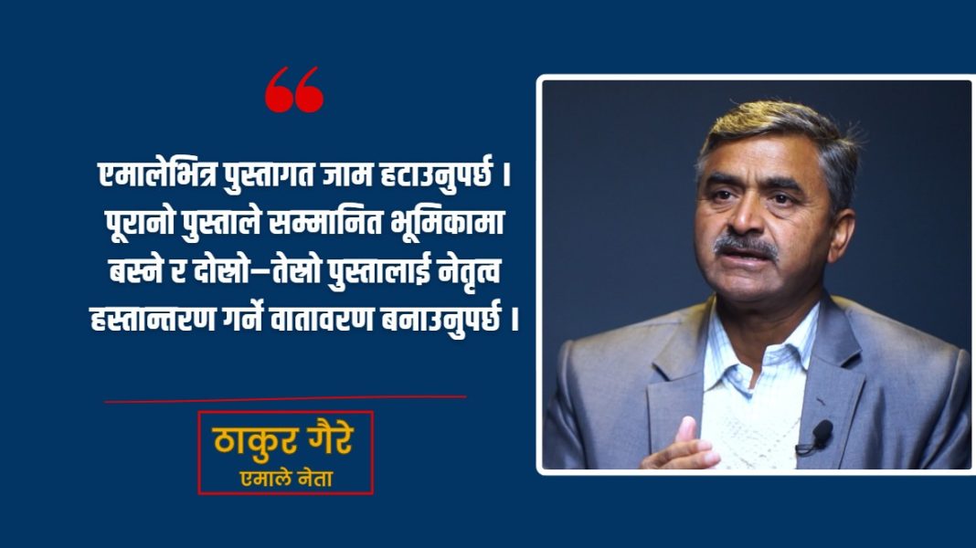 गैरेले पार्टीभित्र पुस्तागत जाम हटाउनुपर्ने आवश्यकता दोहोर्याउँदै भने, ‘पूरानो पुस्ताले सम्मानित भूमिकामा बस्ने र दोस्रो–तेस्रो पुस्तालाई नेतृत्व हस्तान्तरण गर्ने वातावरण बनाउनुपर्छ ।’ उनका अनुसार पार्टीमा महिला, दलित, जनजाति, पिछडिएको क्षेत्र तथा ४० वर्षमुनिका युवाको सुनिश्चित प्रतिनिधित्व अब वैधानिक रूपमा लागू गर्ने दिशामा छलफल अघि बढेको छ ।