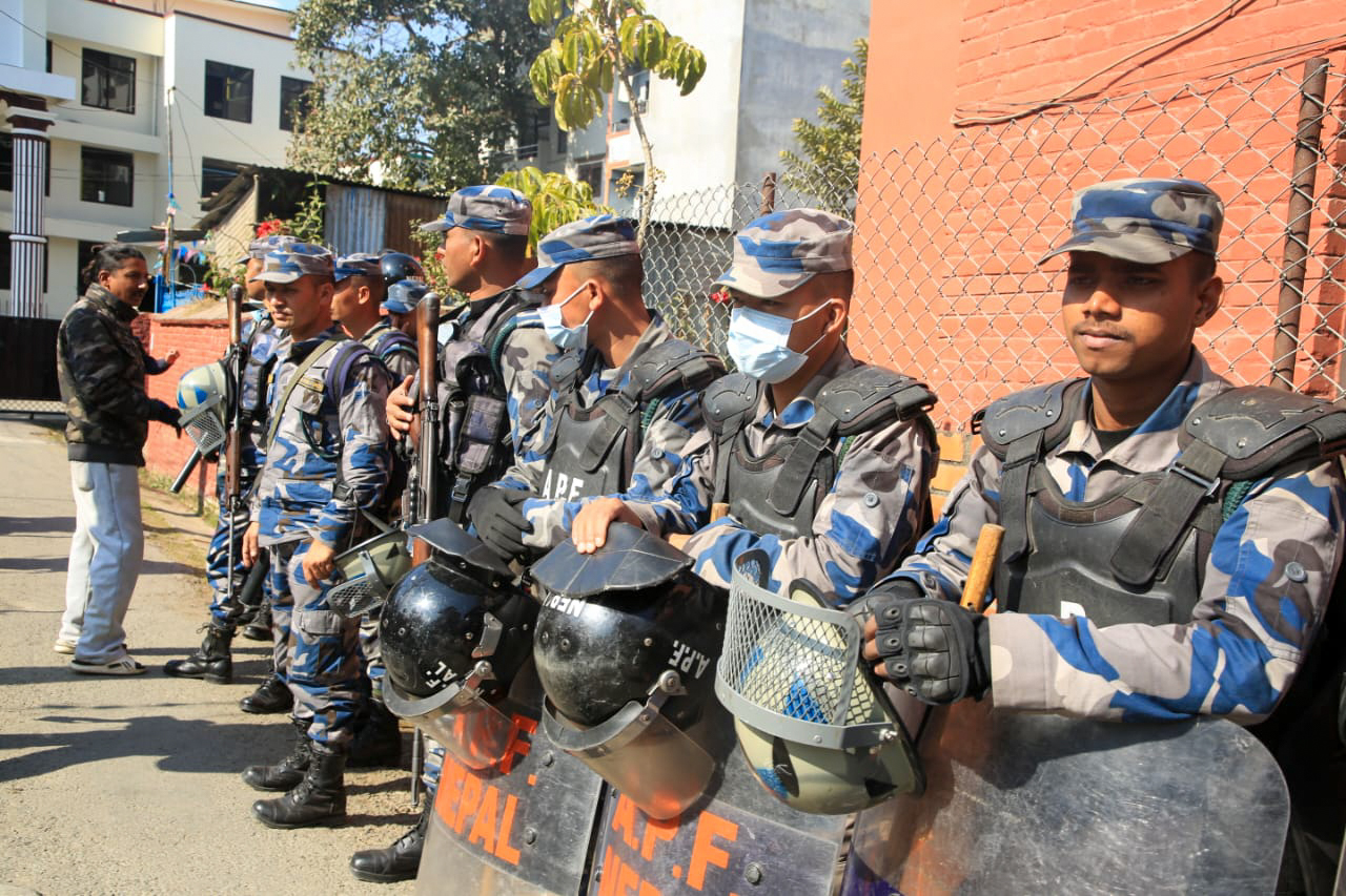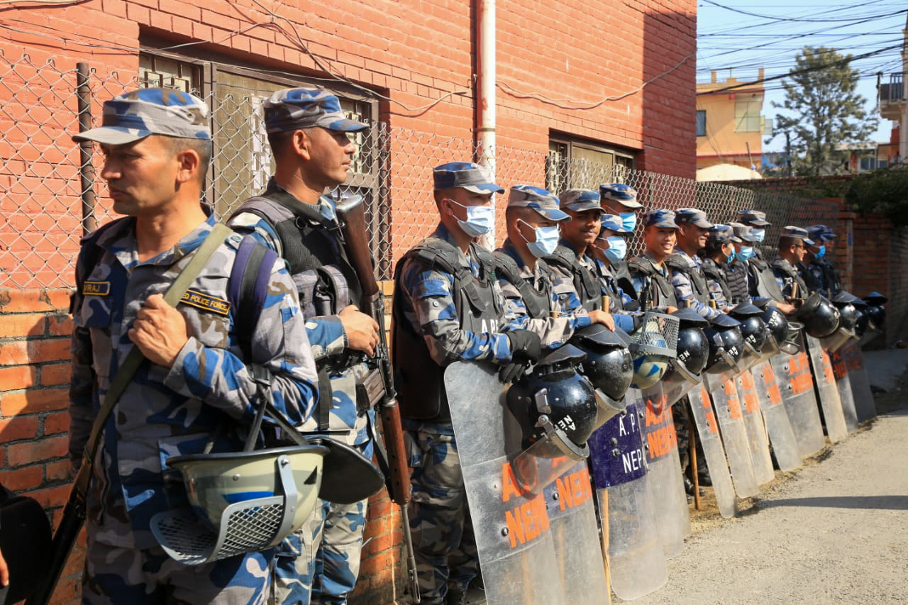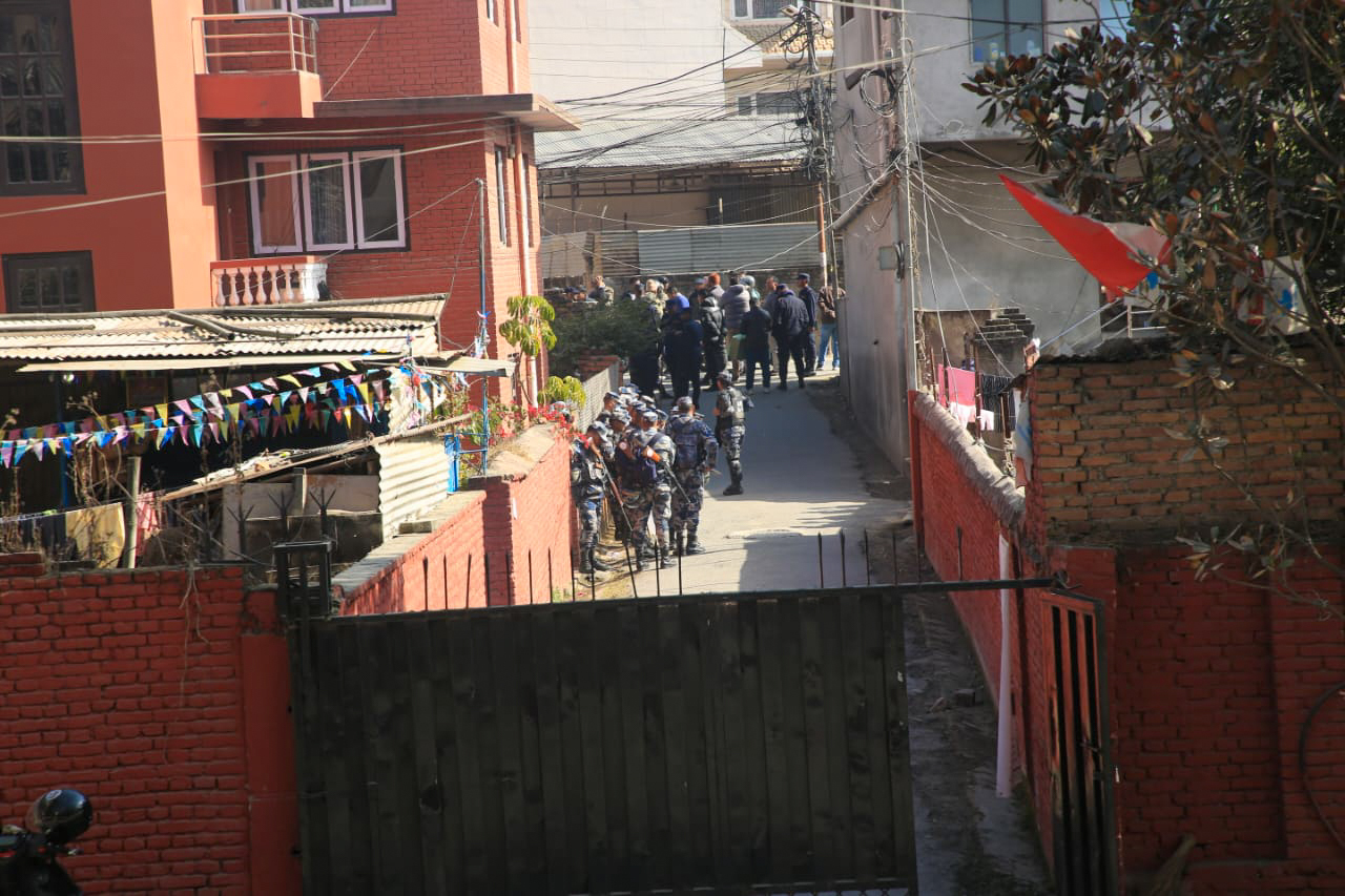 नेपाली कांग्रेसभित्र विशेष महाधिवेशन र नियमित महाधिवेशनका कारण विवाद बढेपछि झडप हुने खतरा उत्पन्न भएपछि सानेपास्थित पार्टी कार्यालय परिसरमा सुरक्षा व्यवस्था कडा पारिएको छ । मंगलबार पार्टीको सम्पादन समितिको बैठक सुरु हुनुपूर्व कार्यकर्ताहरुको भीड वाक्लिएपछि सुरक्षाकर्मीको संख्या बढाइएको छ ।