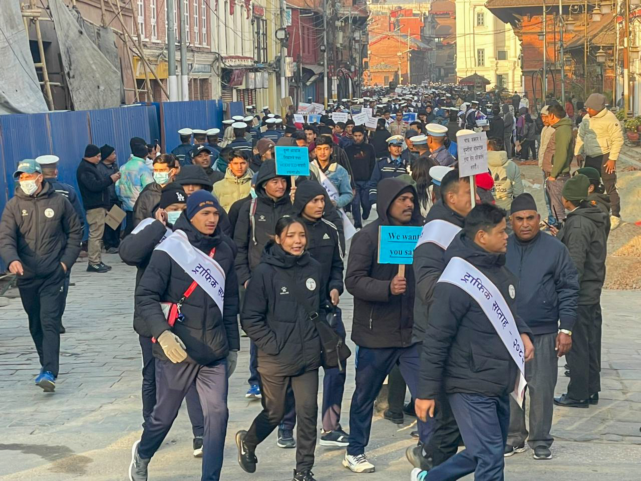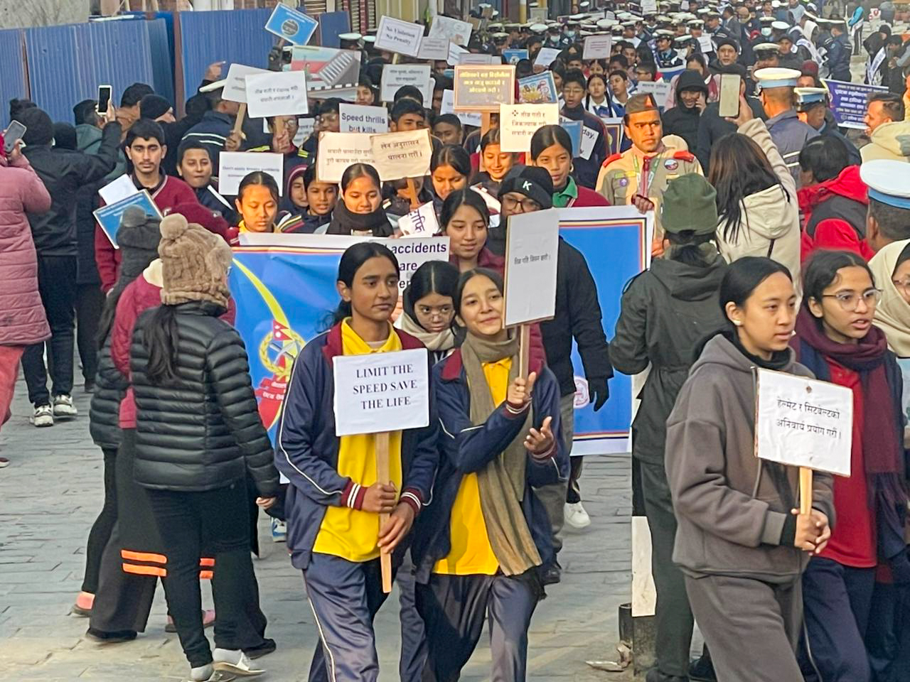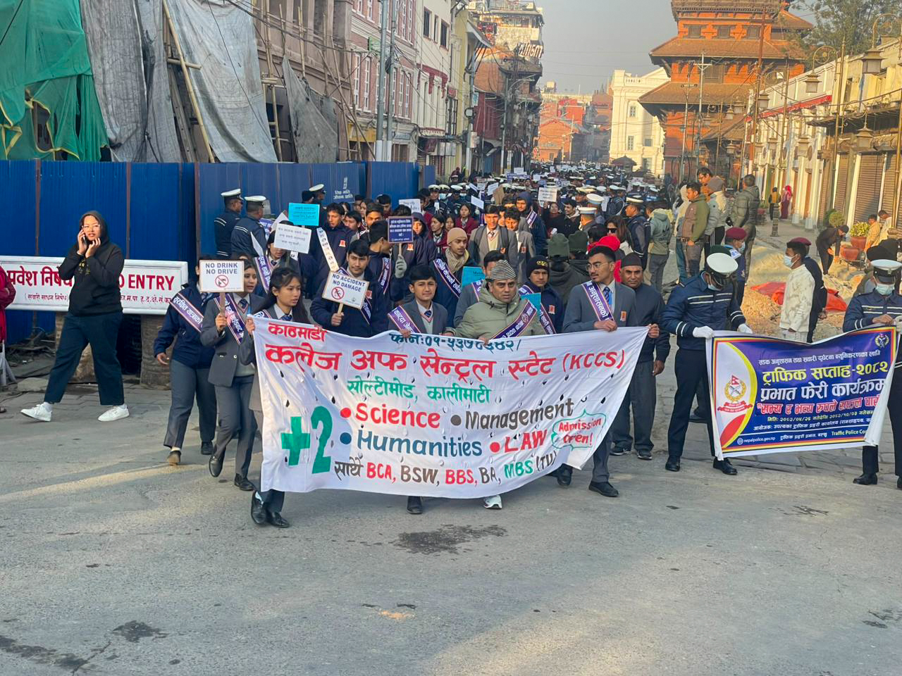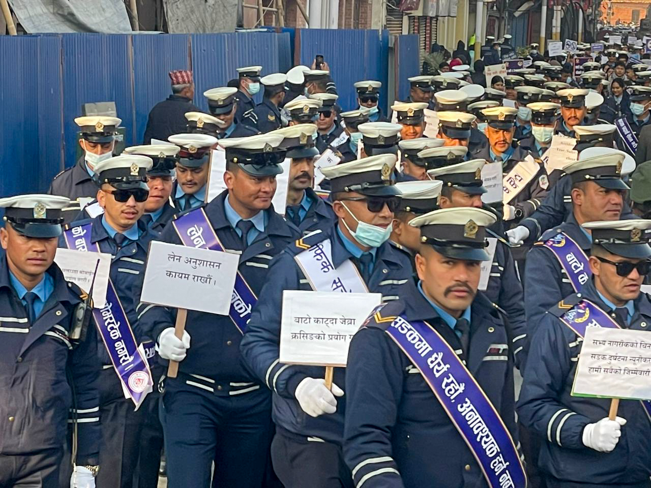 ‘अनावश्यक हर्न बजाई ध्वनी प्रदूषण नगरौं, सभ्यताको परिचय दिउँ’ भन्ने सन्देशसहित ‘दुर्घटना न्यूनीकरण विशेष अभियान तथा ट्राफिक सप्ताह २०८२’ को अवसरमा प्रभातफेरी कार्यक्रम आयोजना गरिएको छ । ‘ट्राफिक नियम पालना गरौं, दुर्घटनाबाट बचौं र बचाऔं’ भन्ने नारासहित आयोजित कार्यक्रममा सचेतनामूलक प्लेकार्डसहित सहभागीहरू सडकमा उत्रिएका छन् ।
