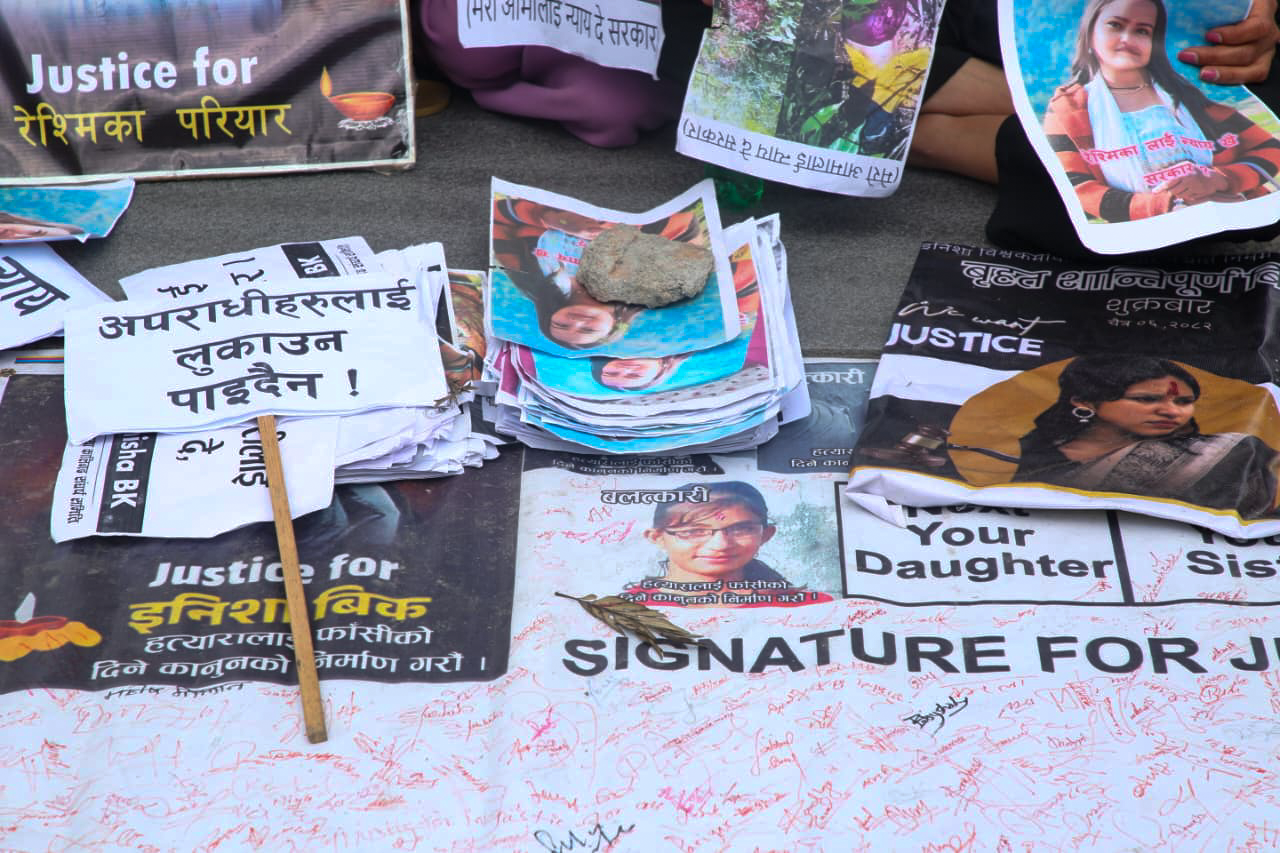 उनीहरुले १७ वर्षीया इनिशा विकको न्यायका लागि महिला तथा दलितमाथि बलात्कार र हत्या अन्त्य गर ,पीडितलाई न्याय दे, बलात्कारीलाई फाँसी दिने कानुन बनाउ लेखिएको ब्यानर प्रदर्शनगरी ब्यानरमा हस्ताक्षर संकलन कार्यक्रम गरेका हुन् ।