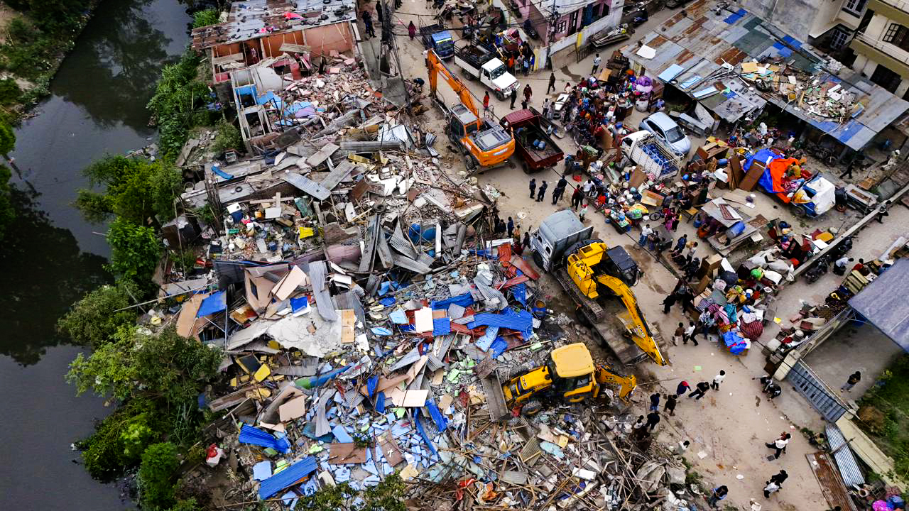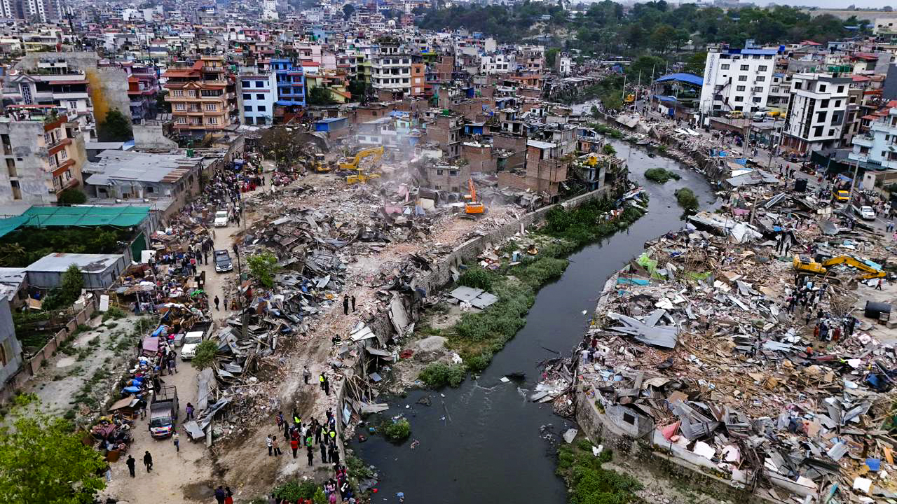 नेपाल सरकारको निर्देशनअनुसार अतिक्रमण गरी निर्माण गरिएका संरचना तथा बस्ती भत्काउने अभियान आज बिहानदेखि तीव्र बनाइएको हो ।