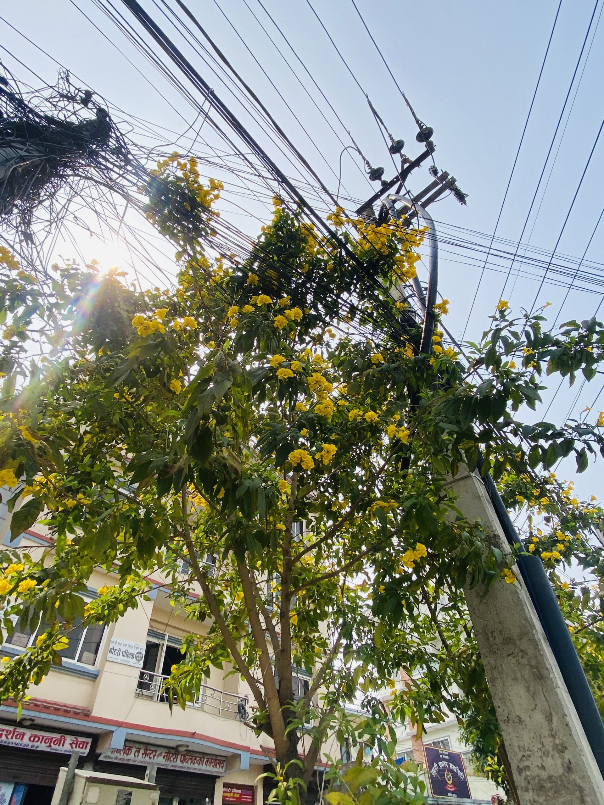 वसन्तको आगमनसँगै, काठमाडौँ उपत्यका जताततै रंगीन फूलहरूले सजिएको छ। बाटोको छेउमा, घरका आँगनमा, र पार्कहरूमा फुल्ने यी फूलहरूले शहरको सौन्दर्यलाई बढाएका छन्। तर, यही सौन्दर्यको बीचमा एउटा यस्तो दृश्य पनि देखिन्छ, जसले हामीलाई सोच्न बाध्य बनाउँछ  । यो दृश्य साँच्चै नै अनौठो र विरोधाभासपूर्ण छ। एकातिर, फूलहरूको कोमल र प्राकृतिक सौन्दर्य छ, भने अर्कोतिर, तारहरूको कठोर र कृत्रिम संरचना छ। यो दृश्यले हामीलाई प्रकृति र विकासको बीचको सम्बन्धलाई पुनर्विचार गर्न प्रेरित गर्छ।